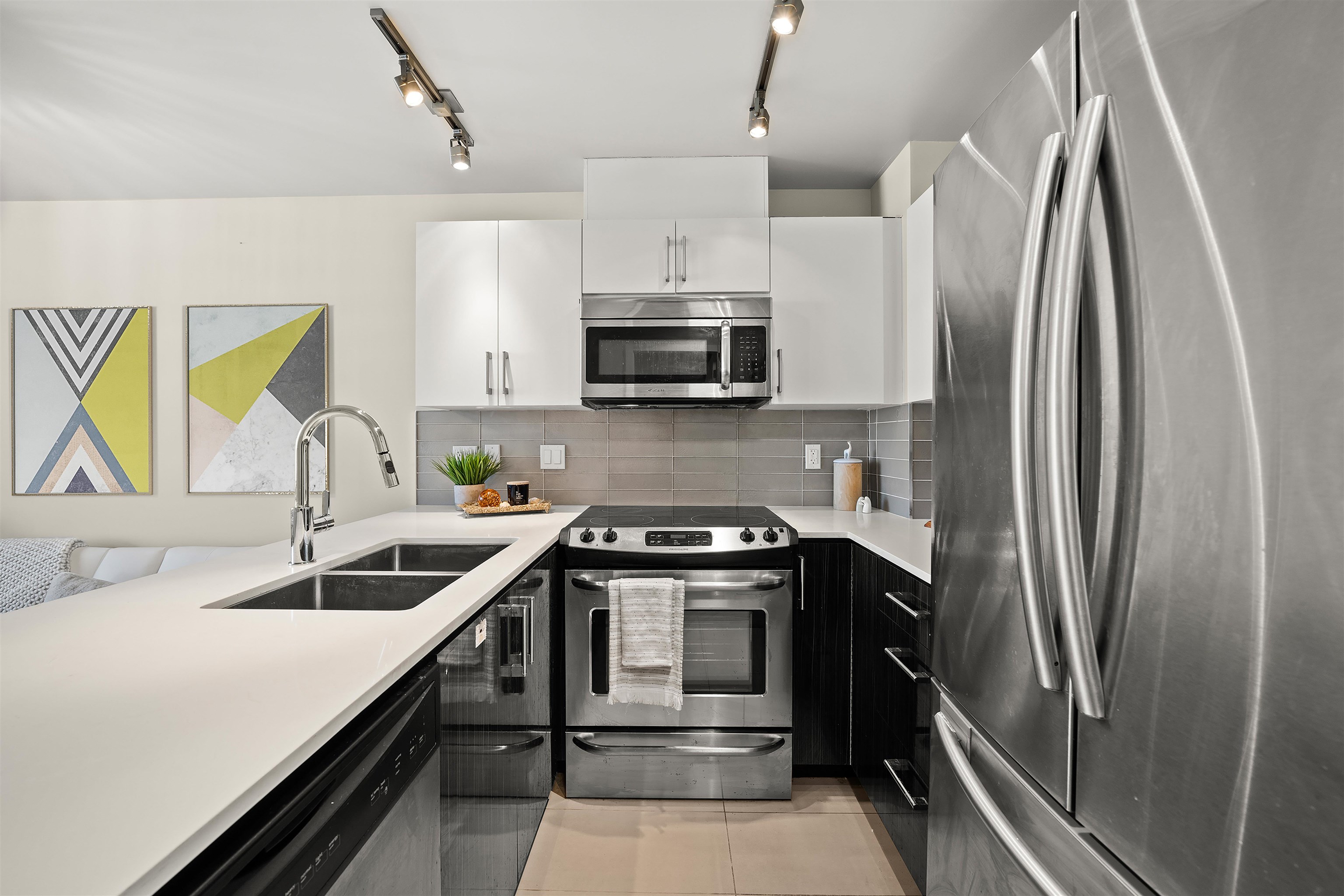 Washer/Dryer Dishwasher Refrigerator Stove Microwave Elevator Storage Smoke Detector(s) Fire Sprinkler System Baseboard Laminate Tile Other Public Public Sewer Sanitary Sewer Electricity Connected Water Connected Window Coverings In Unit