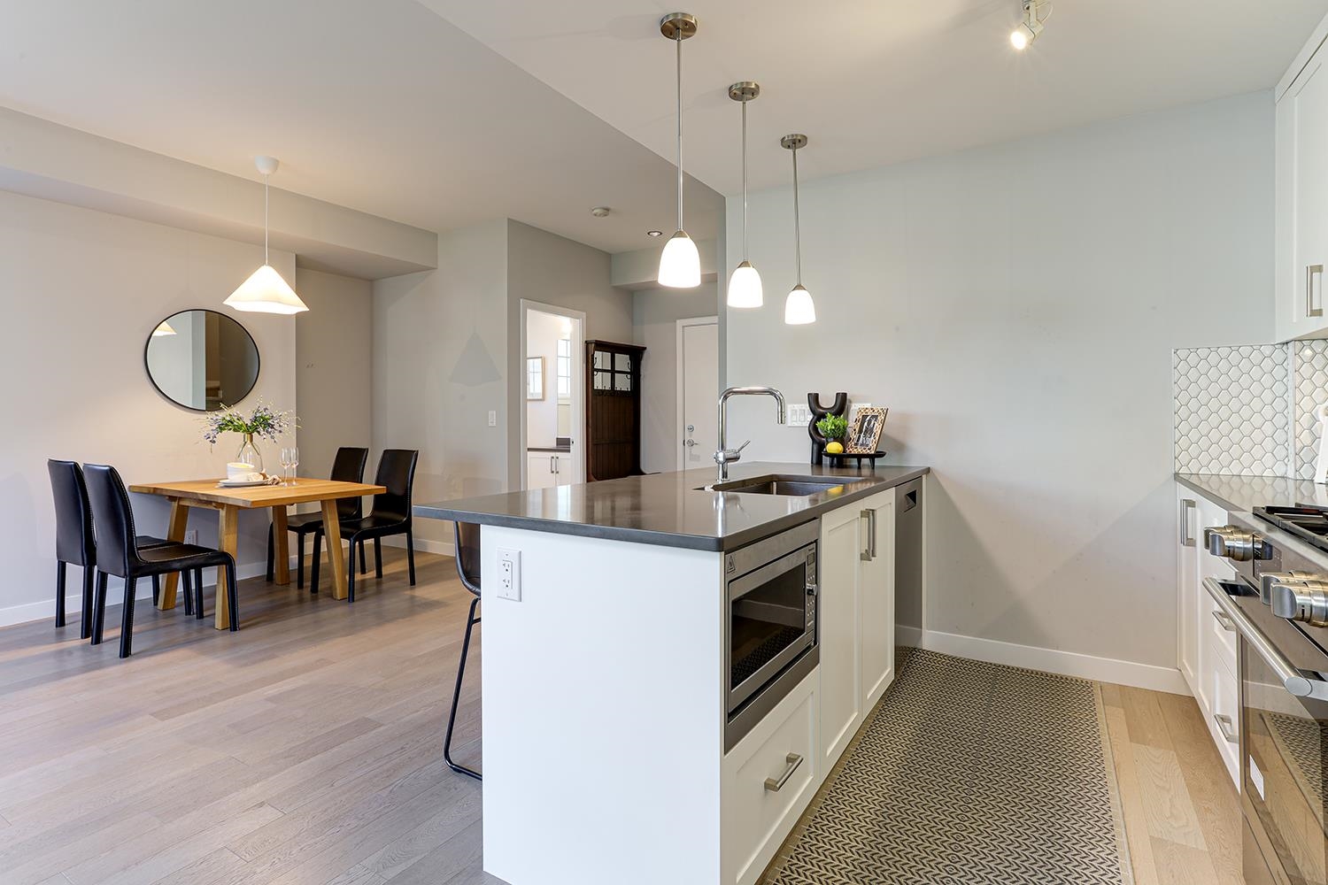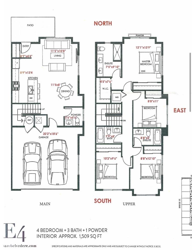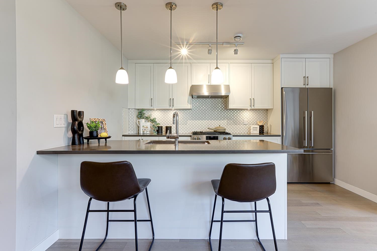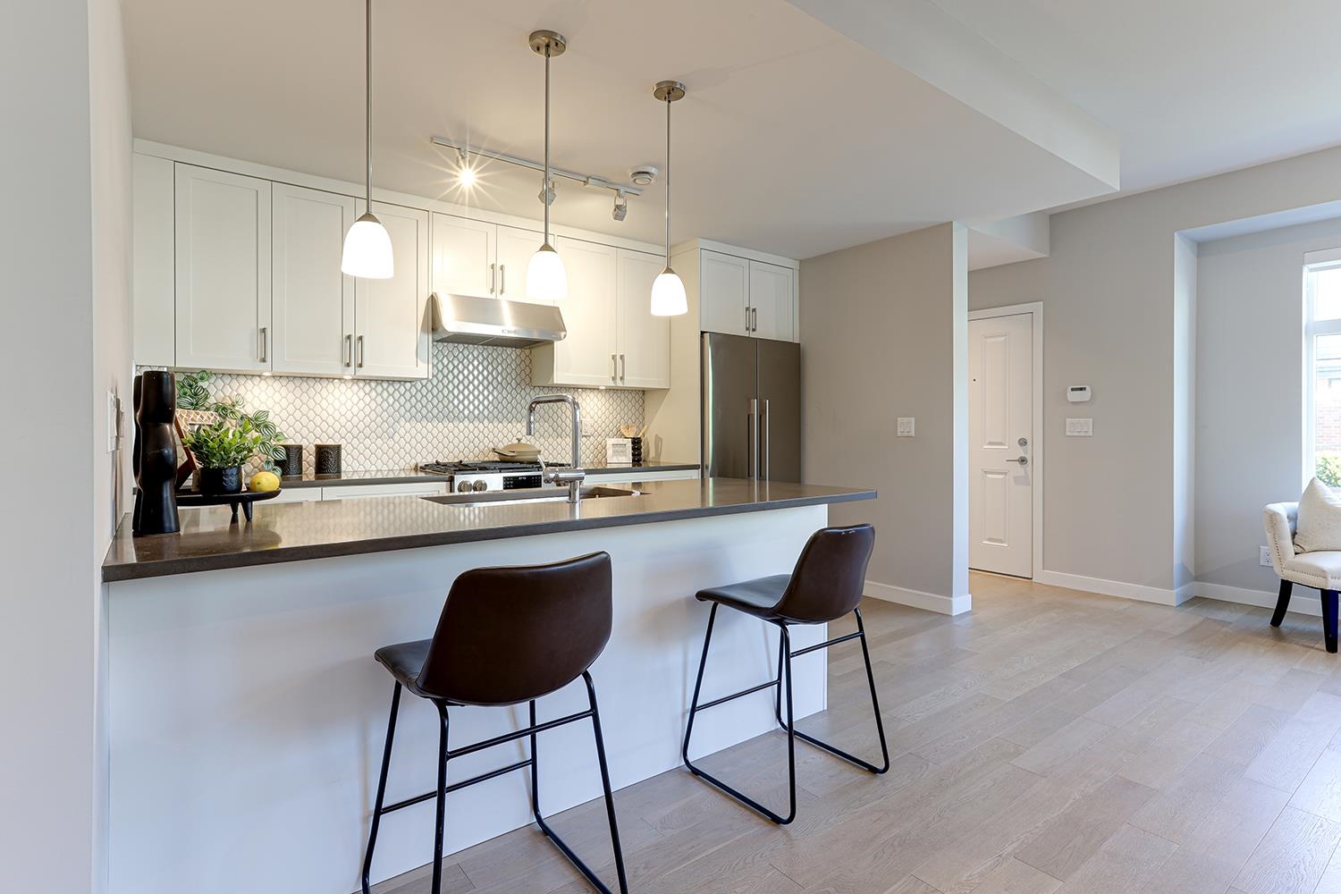 Parc Belvedere - Luxury Townhome in Prime Richmond Location! Rare 2 storey inside corner unit with 4 spacious bedrooms, 9’ ceilings, and air conditioning. Gourmet kitchen with 36” Fisher & Paykel French-door fridge, 4-burner gas stove, undermount sink, and soft-close cabinets. High-end stainless steel appliances and hardwood flooring throughout. Attached double garage (side-by-side parking). Move-in ready and like new — don’t miss it!